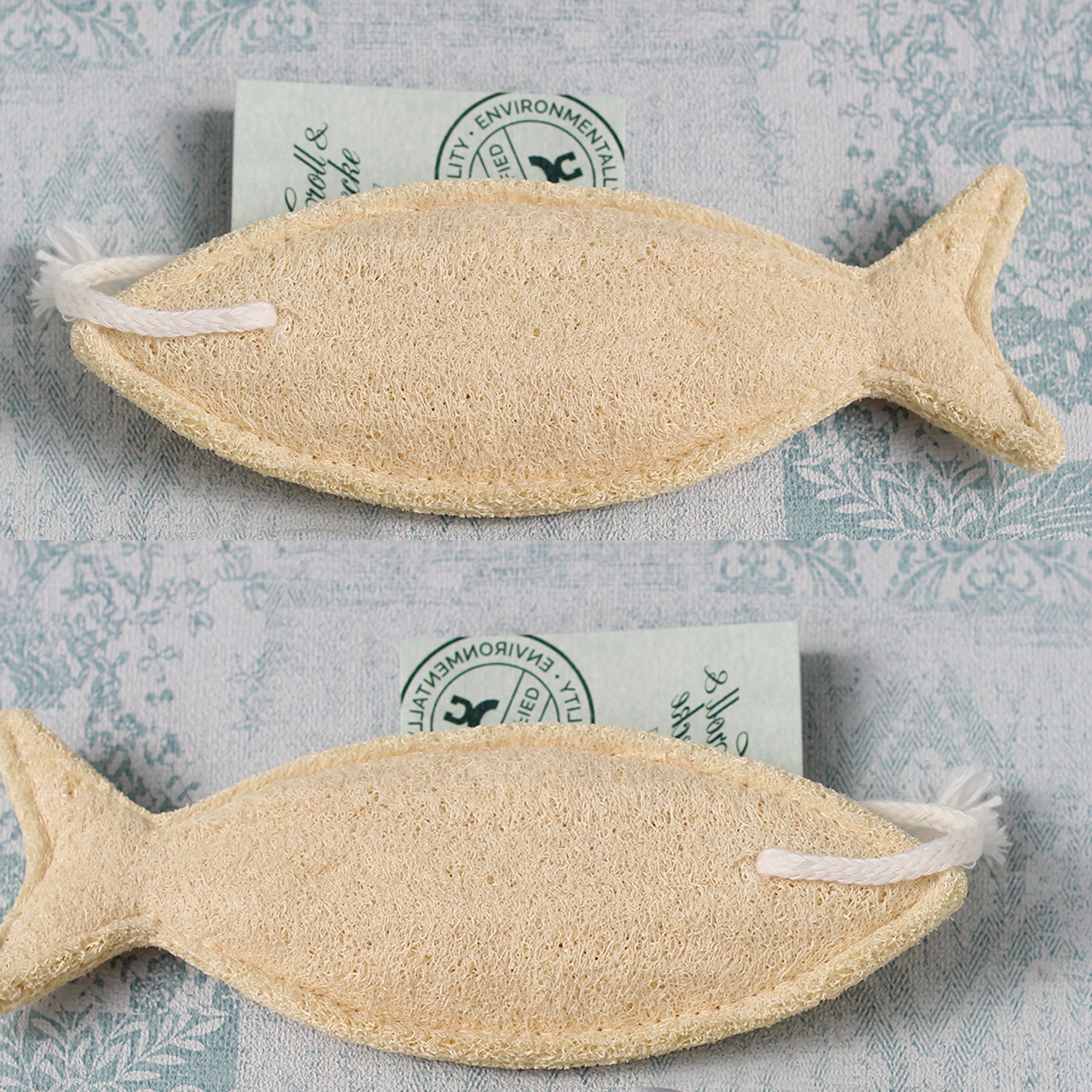 La esponja de luffa con formas es una esponja vegetal versátil disponible en dos diseños diferentes: pez y patito